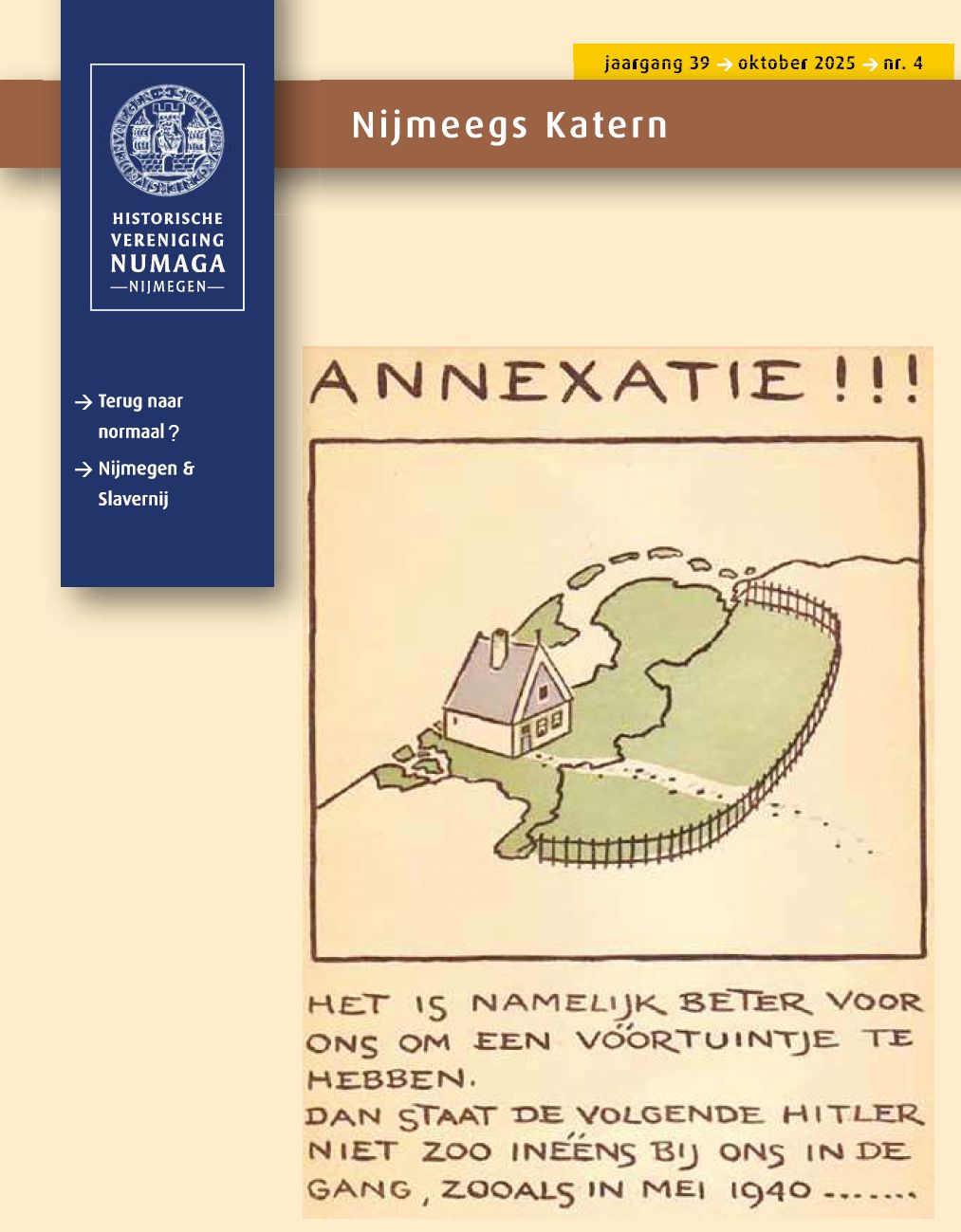 In het eerste artikel van Nijmeegs Katern 2025-4 gaat auteur Jan Brauer in op de situatie in het grensgebied van Nederland en Duitsland vlak ná de Tweede Wereldoorlog. Terug naar normaal? vraagt hij zich af en hij vertelt over het moeizame opbouwen van die relatie met de buren in een tijd dat haat en wraakgevoelens overheersen. Op nationaal niveau is men vooral bezig met het herstellen van de oorlogsschade en het verhalen van die schade op de agressor. Men denkt in eerste instantie aan de annexatie van grote delen van Duitsland maar in 1949 worden uiteindelijk slechts kleine delen geannexeerd waaronder Elten en de Duivelsberg bij Nijmegen. De gewone man en vooral de boeren in de regio hebben te maken met de fysieke grens, hoe kom je aan de andere kant, en waar zijn die koeien gebleven die in 1944 nog in de wei stonden? Het onderlinge wantrouwen is groot. Het gezag in Duitsland wordt uitgeoefend door de geallieerde bezetter, en dat contact gaat ook niet altijd even gemakkelijk. Toch zijn er 80 jaar geleden weer aarzelende grenscontacten, de buren zoeken elkaar weer voorzichtig op.
